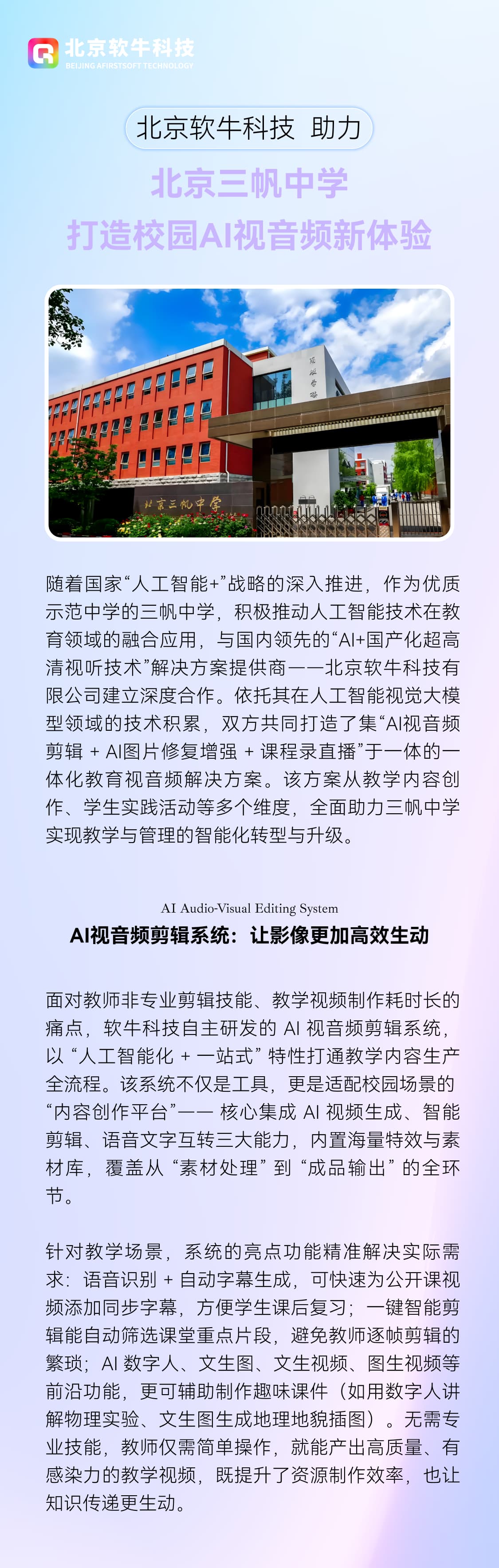 北京软牛助力北京三帆中学,打造校园AI视音频新体验